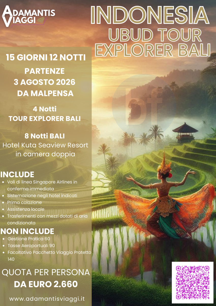 Indonesia Ubud Tour Explorer Bali - 03 Agosto 2026